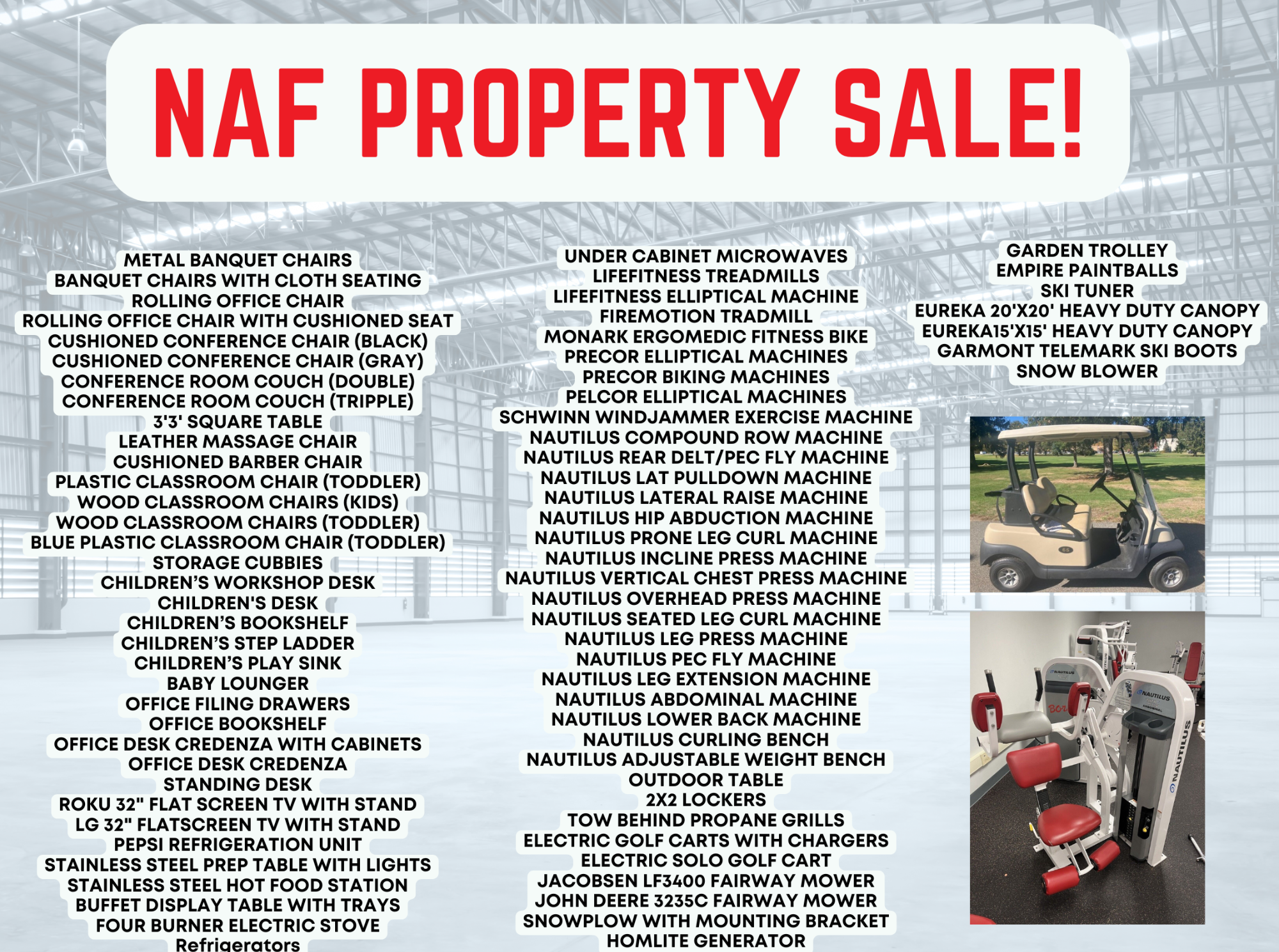 NAF Property Sale will take place at 3329 Belt Rd (Parking is at the PX).